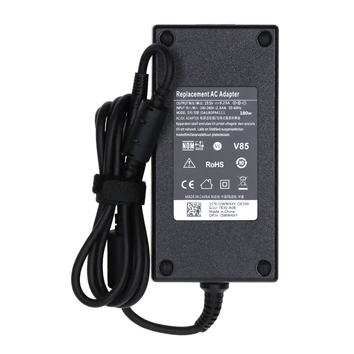 Pålidelig 180W 19,5V Dell-oplader med barrel-stik.
