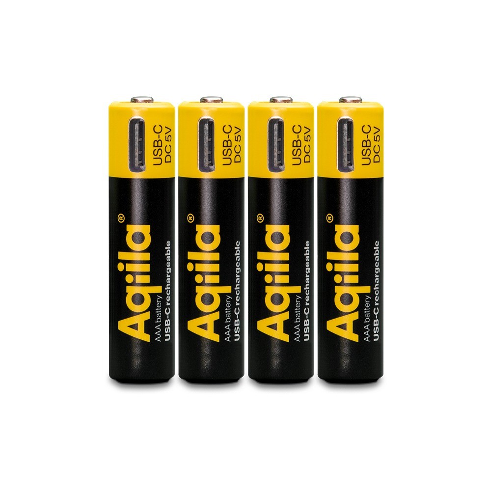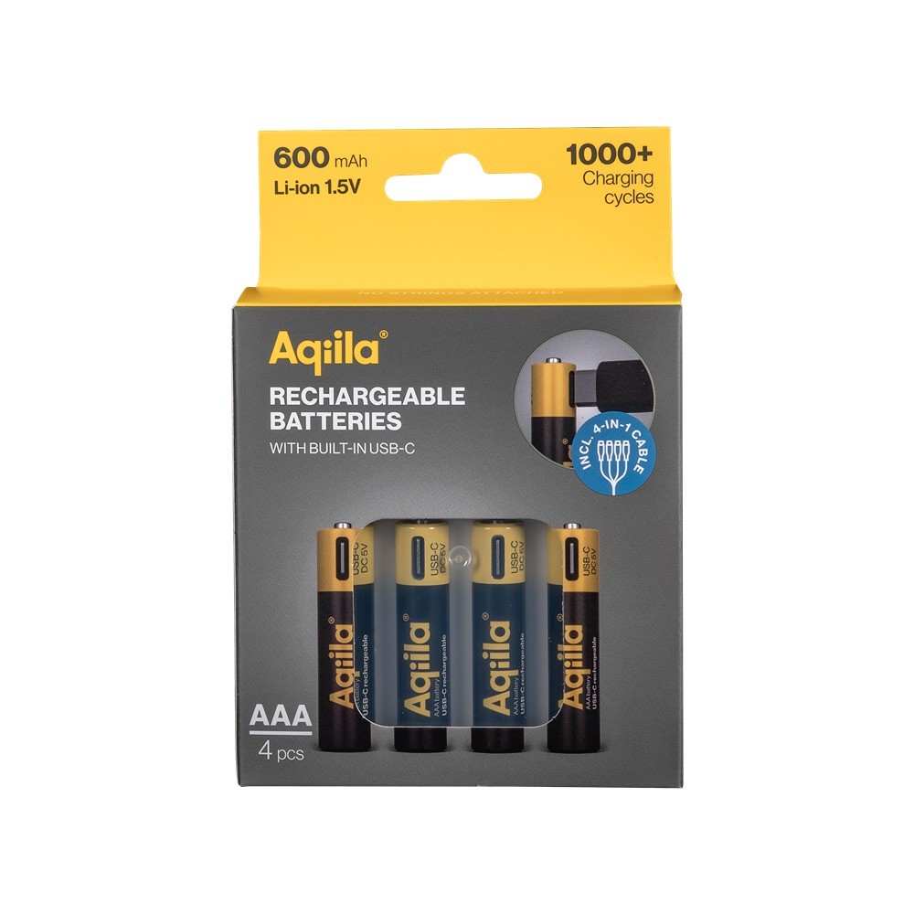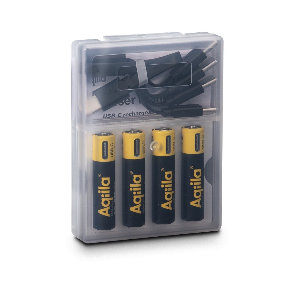 Til mindre enheder, der har brug for pålidelig energi, leverer Aqiila AAA genopladelige USB-C-batterier. Ægte 1,5 V output sikrer stabil ydelse, mens den indbyggede USB-C-port giver dig mulighed for at oplade batterierne direkte ingen separat oplader nødvendig. Hver pakke med fire batterier kommer med et 4-i-1 opladerkabel og en rejsetaske, perfekt til at smide i din rygsæk. Fuldt opladet på kun 1,5 timer og testet til over 1000 opladningscyklusser, de er den lette, altid klar løsning til strøm, når du er på farten.