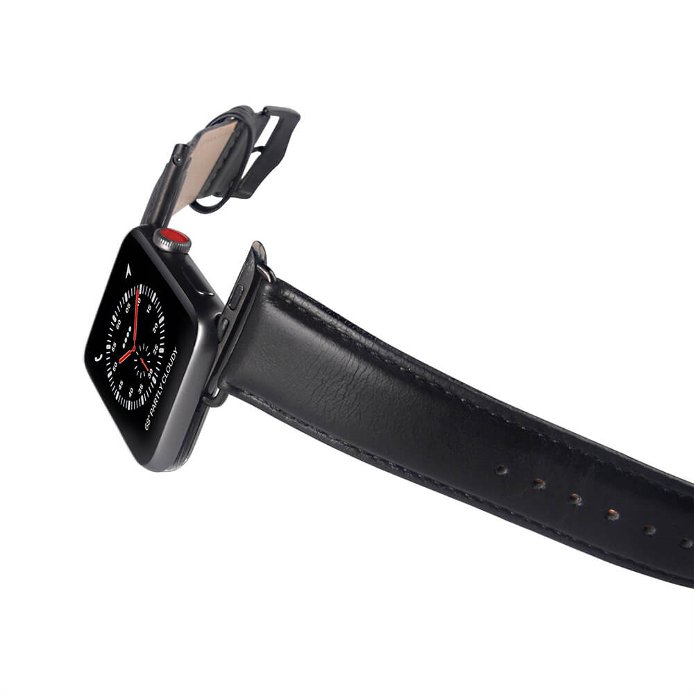Buffalo Apple Watch 44/45/46mm/Apple Watch Ultra Armbånd Ægte Læder Sort er et sort armbånd til Apple Watch 44mm, Apple Watch 45mm, Apple Watch Ultra 49mm og Apple Watch 46mm.