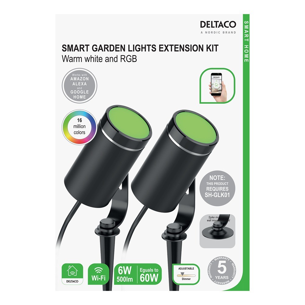 Gør din nabo jaloux ved at oplyse din have i forskellige dejlige farver. Kontroller dine nye smarte havelygter med DELTACO SMART HOME appen, Google Assistant eller Amazon Alexa. Skab forskellige stemninger i haven afhængigt af tid på dagen. Lygterne har varmt hvidt lys ved 2700 Kelvin og kan vise op til 16 millioner forskellige farver. Udvid dit eksisterende SH-GLK01 med dette udvidelsessæt SH-GLEX01.