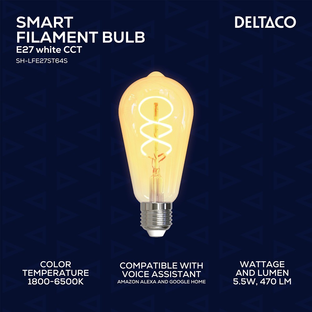 Med DELTACO SMART HOME-appen kan du håndtere al betjening af lampen. Installation er hurtig og nem; alt, hvad du behøver, er et fungerende trådløst netværk, hvilket betyder, at der ikke kræves særlige hubs eller gateways. I DELTACO SMART HOME-appen kan du styre individuelle lamper separat eller gruppere dem i forskellige rum for nem håndtering af en gruppe lamper. Ud over at tænde eller slukke for en lampe kan du også indstille en timer, hvis du ønsker, at lampen skal slukke efter et bestemt tidspunkt. Alternativt kan du planlægge specifikke tidspunkter for, hvornår den skal være tændt eller slukket. DELTACO SMART HOME-appen tilbyder også muligheden for at oprette automatiske handlinger, såsom at tænde lampen, når solen går ned, eller gruppere flere lamper til at udføre den samme handling på et givet tidspunkt. DELTACO SMART HOME-appen kan naturligvis downloades gratis til både Android og iOS.