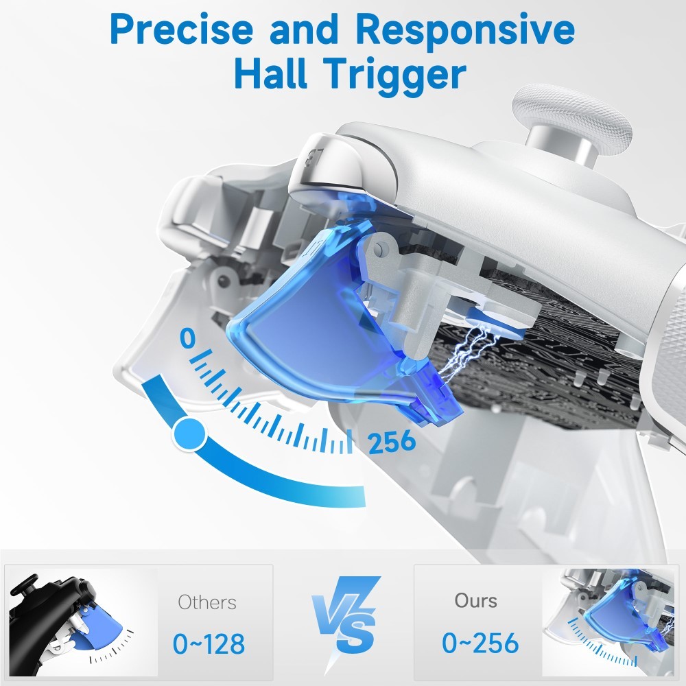 - Hall Trigger: Den bruger den nyeste Hall-switch, som er mere sensitiv i kontrol og har en længere levetid