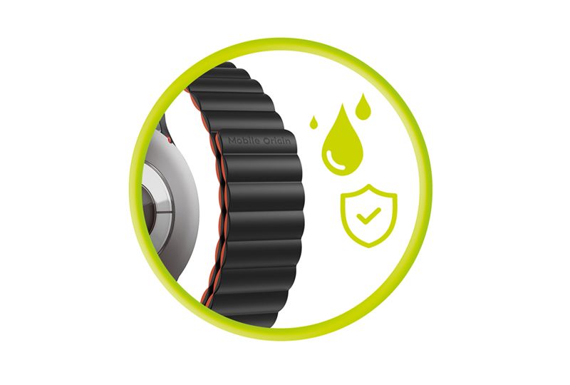 Kombinationen af silikone i høj kvalitet og indbyggede magneter gør armbåndet modstandsdygtigt over for sved, vand og støv i hverdagen. Rengøringen er hurtig og nem – tør armbåndet af eller skyl det under rindende vand efter træningen.