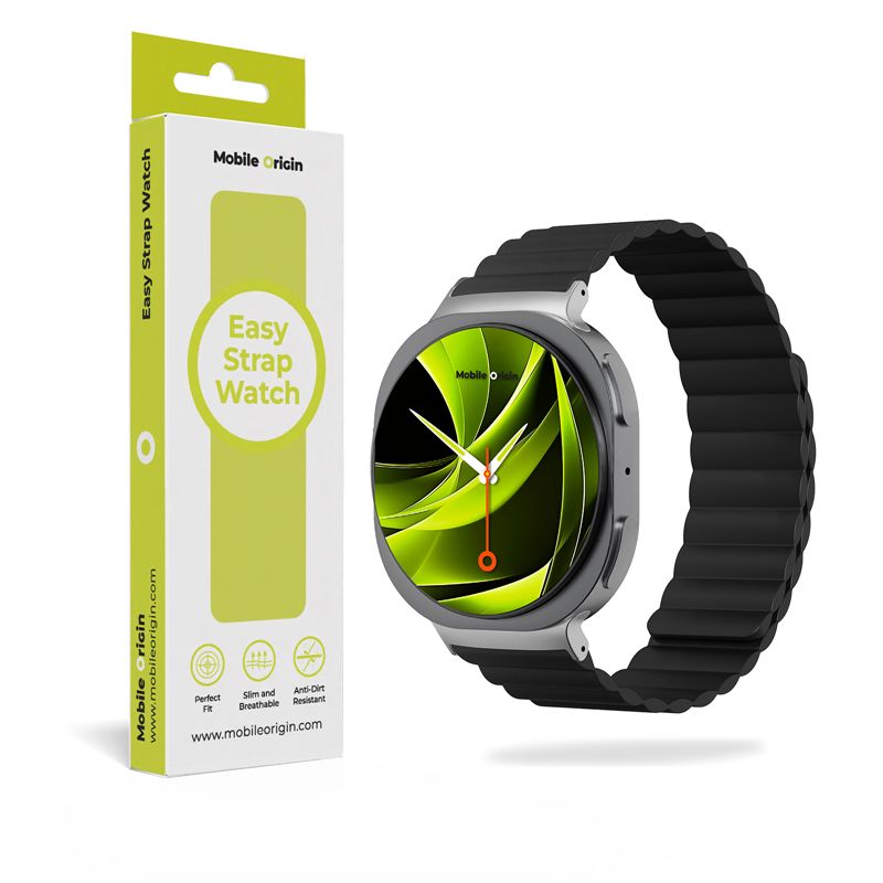 Mobile Origin Easy Strap Magnetic er skabt for at harmonere med Samsung Galaxy Watch 8's karakter. Det magnetiske fæste holder armbåndet tæt ind til uret og danner en kompakt enhed, der fungerer lige godt i byen som i fitnesscenteret.