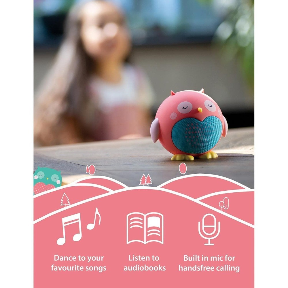 Olive the Owl Bluetooth-højttaler er perfekt til at lytte til musik eller læse din yndlingslydbog og giver dig op til 4 timers samlet afspilningstid med en imponerende standby-tid på 60 dage.