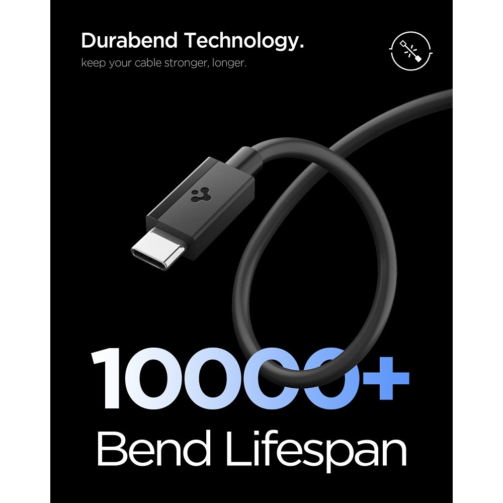 Spigen Essential USB-C til USB-C kabel kan levere strøm op til 60W og overføre data med maksimal hastighed på 480Mbps. Det er langt nok til at bruge bekvemt i forskellige situationer. Desuden, med Spigen Durabend teknologi, garanterer det lang holdbarhed og forhindrer flosning og