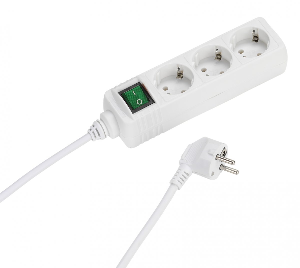 Stikdåse med 3 jordede stikkontakter, der er børnesikker og har en afbryder.