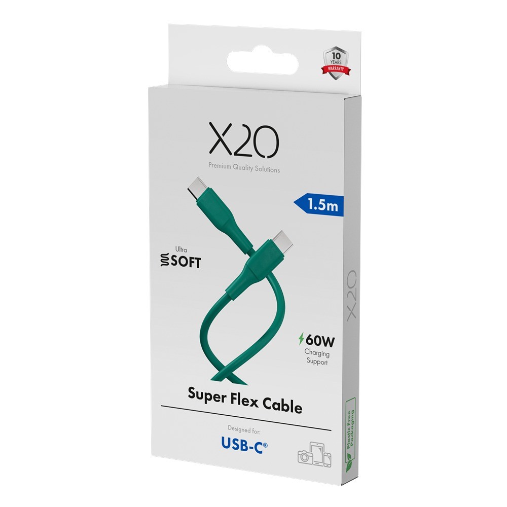 X2O Soft-Touch Silicone Series er et USB-C til USB-C-kabel med et blødt silikonehylster, der aktivt modvirker sammenfiltring. Kabelen følger USB 2.0-standarden og kombinerer en robust indre trådkonstruktion med støbte kontaktplugger og nikkelbelagte kontakter - hvilket giver et kabel, der både holder længe og er nemt at håndtere.