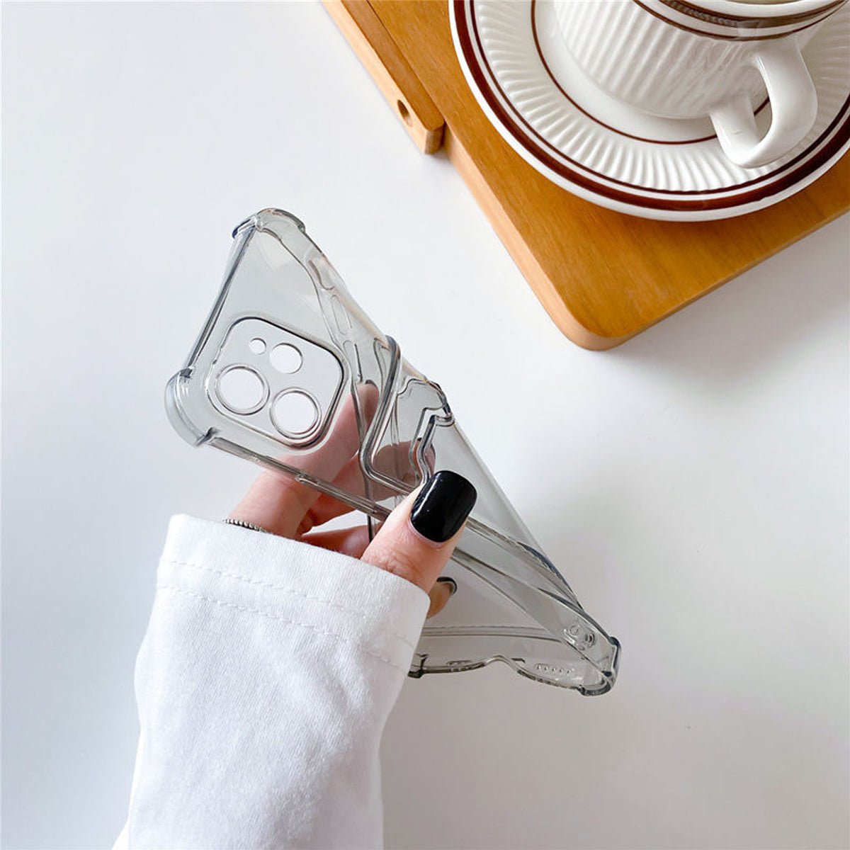 iPhone 11 Skal Korthållare Stöttåligt Grå er et gråt mobilskal til Apple iPhone 11.