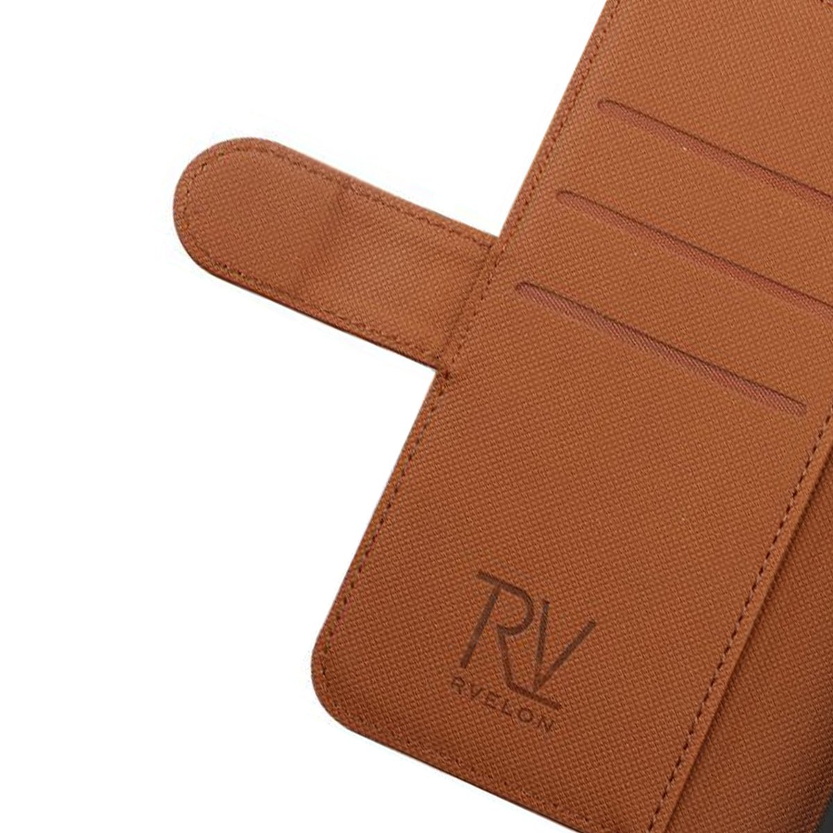 Beskytt din iPhone 13 Pro med denne elegante wallet case i guld-brun farve fra Rvelon. Designet til den moderne bruger, der ønsker at kombinere stil og funktionalitet, tilbyder dette cover fuld beskyttelse med en praktisk magnetisk lukning, der holder telefonen sikker.
