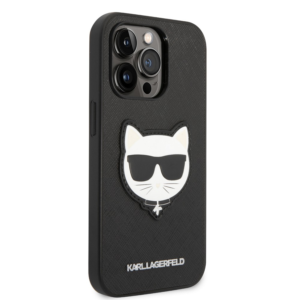 Karl Lagerfeld iPhone 14 Pro Cover Saffiano Choupette Sort