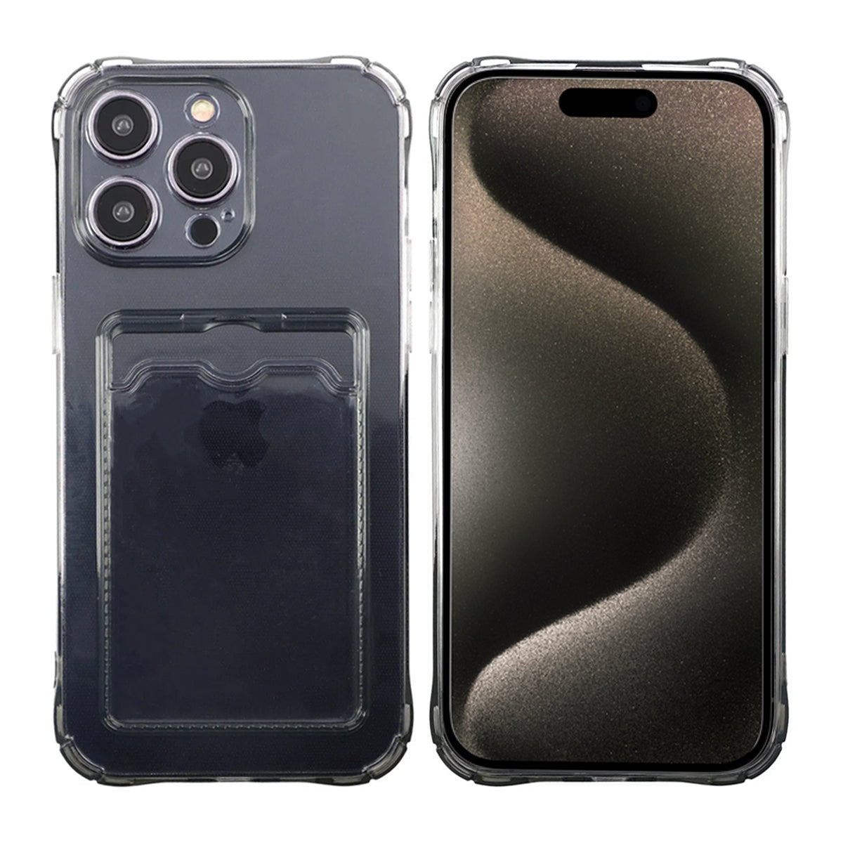 iPhone 15 Pro Max skal kortholder stødsikkert sort er et sort mobilskal til Apple iPhone 15 Pro Max.