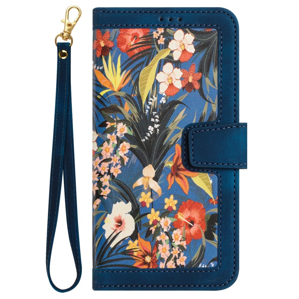 iPhone 15 Pro Max Etui Blomstermønster Mørkeblå