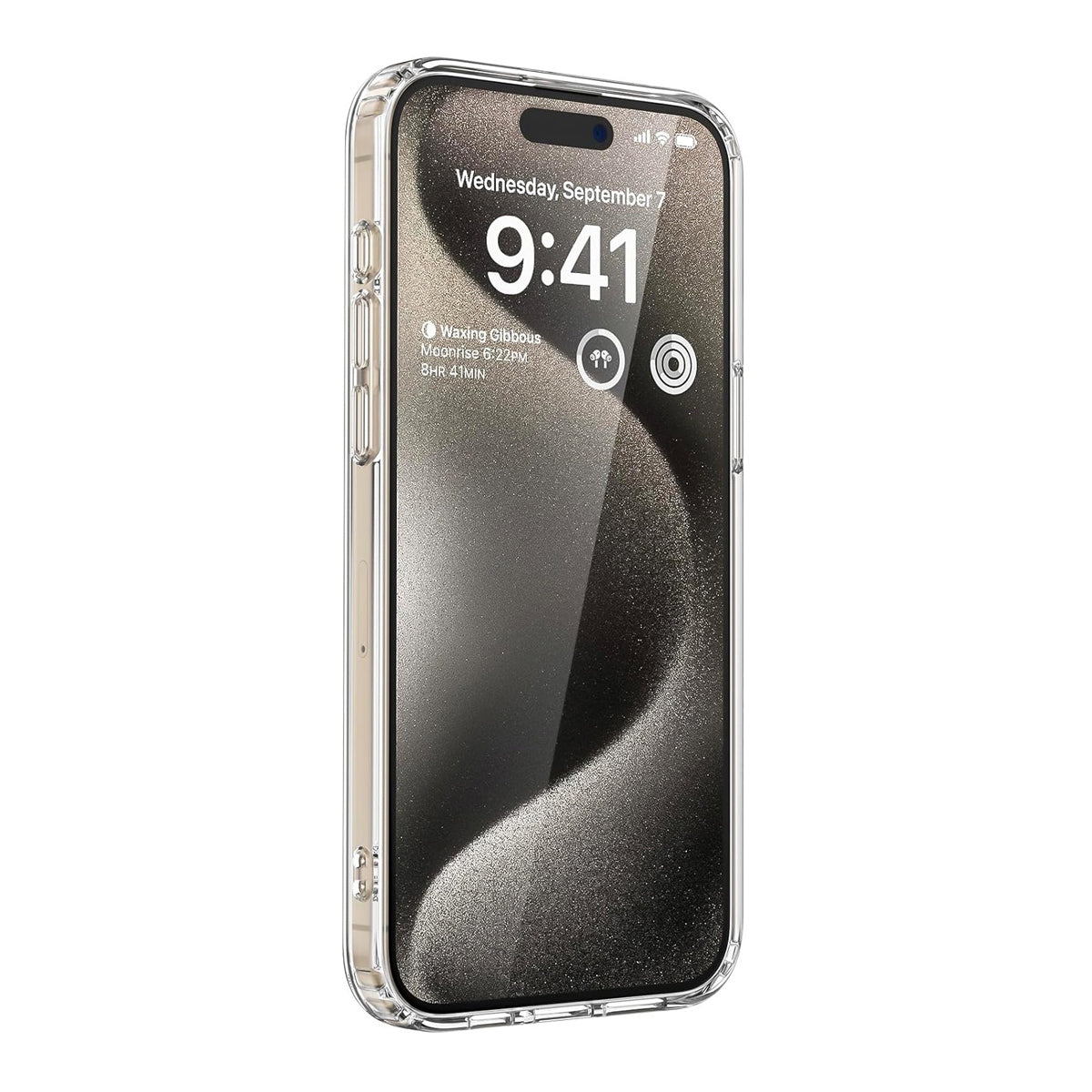 Dette transparente mobilcase til iPhone 15 Pro er lavet til dem, der ønsker pålidelig beskyttelse uden at skjule telefonens design.