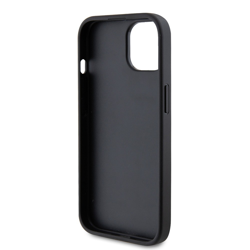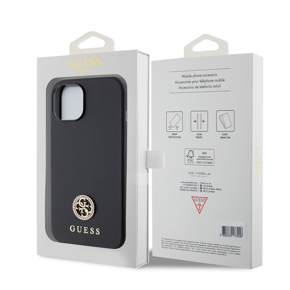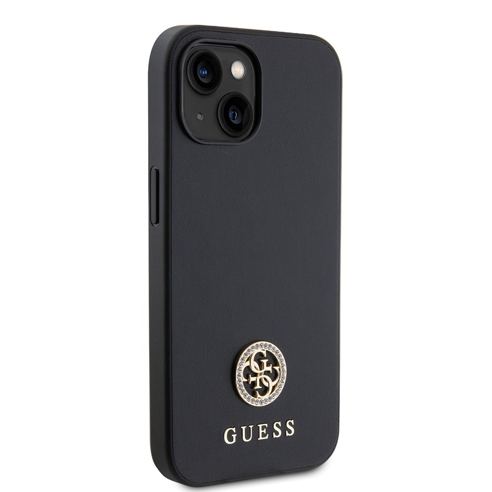Guess iPhone 15 Skal Metal Logo Strass Sort er et sort mobilcover til iPhone 15.