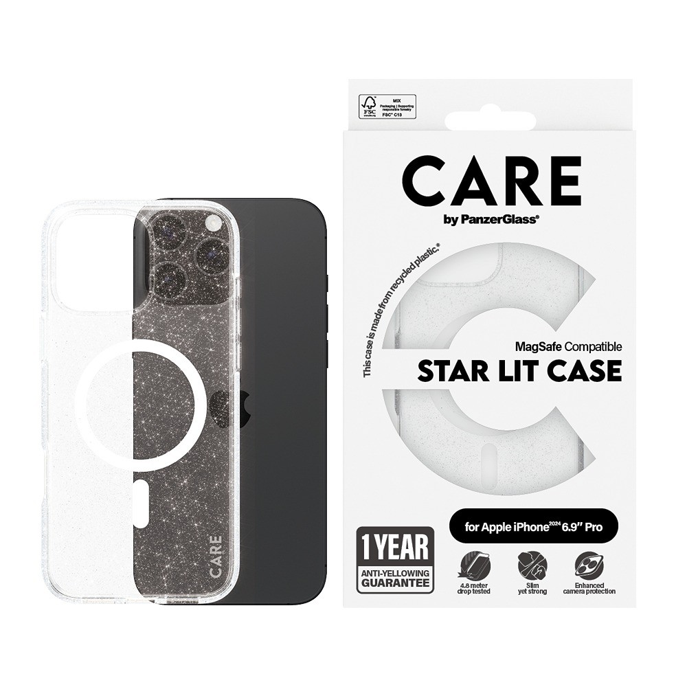 CARE by PanzerGlass iPhone 16 Pro Max Skal Urban Combat MagSafe Star Lit er et hvidt og gennemsigtigt mobilskal til iPhone 16 Pro Max.