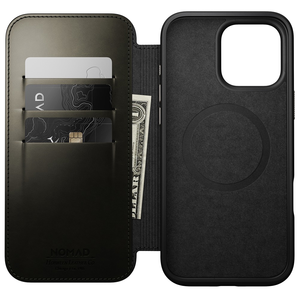 Kvalitet, karakter, tradition: dette etui er fremstillet til læderfanatikere. Bygget med vores arv af vegetabilsk garvet Horween-læder, vil Modern Leather Folio patinere over tid for at udvikle en rig, skinnende finish, der er helt unik for dig. Modern Leather Folio løfter stilfuldt udseendet og følelsen af din telefon, mens den tilbyder robust beskyttelse og opbevaring af dine kontanter og kort.