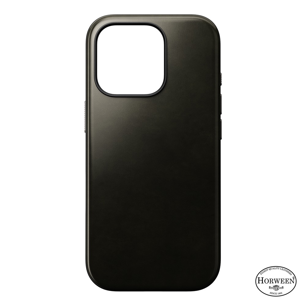 NOMAD iPhone 16 Pro Skal Modern Leather Case Horween Green Chrome er et grønt mobilcover til iPhone 16 Pro.