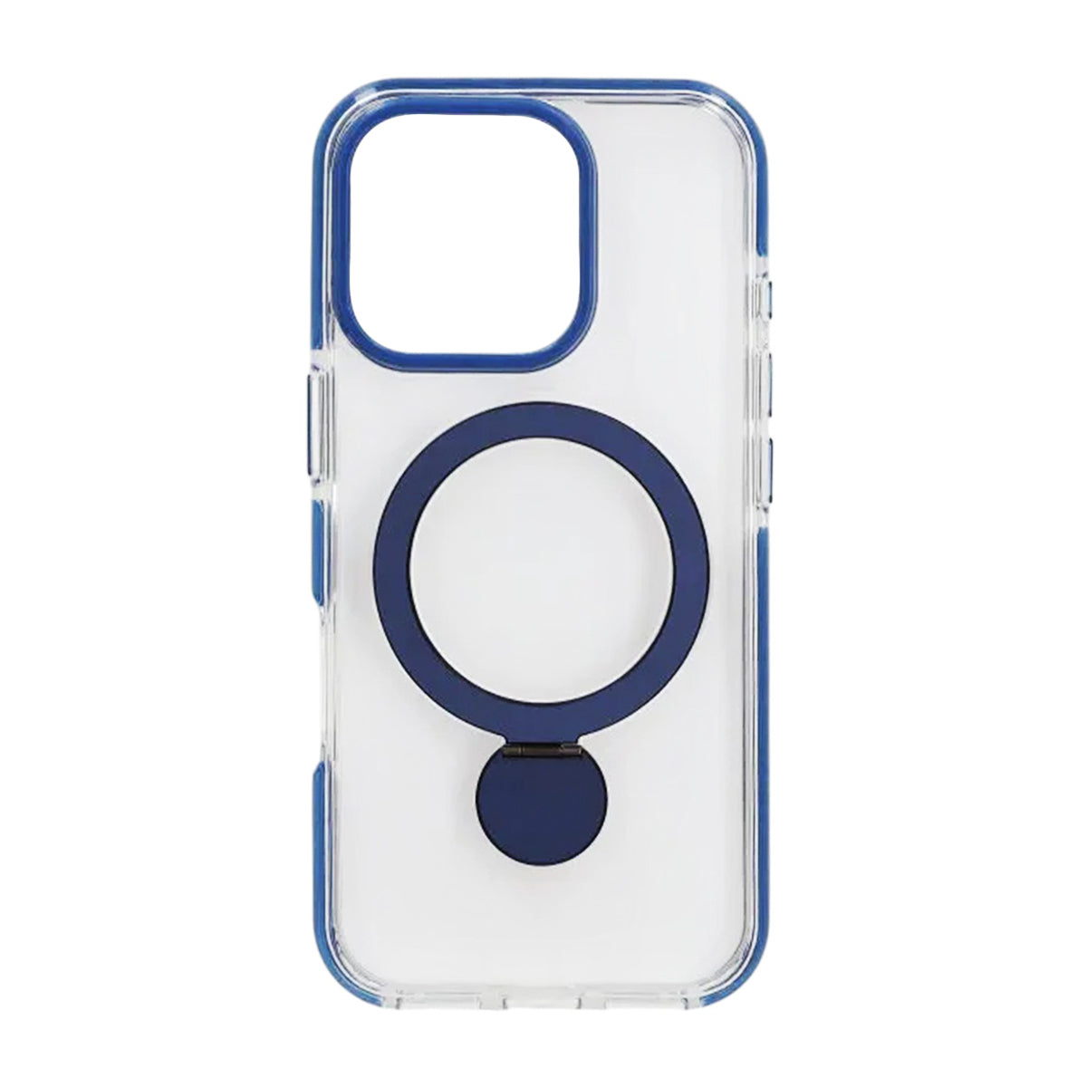 Giv din iPhone 16 Pro både stil og smart funktion med dette gennemsigtige og blå MagSafe-cover, der er udstyret med en foldbar ring, som hurtigt bliver til et praktisk stativ i hverdagen.