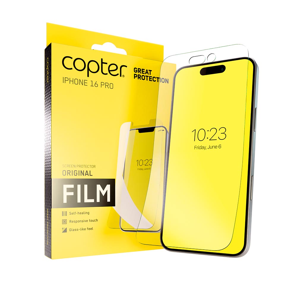 Copter iPhone 16 Pro Skærmbeskyttelse Original Film er en gennemsigtig displaybeskyttelse til iPhone 16 Pro.