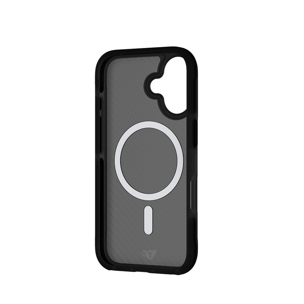 Tech21 iPhone 16 Skal EvoArmor MagSafe Sort er et sort og gennemsigtigt mobilcover til iPhone 16.