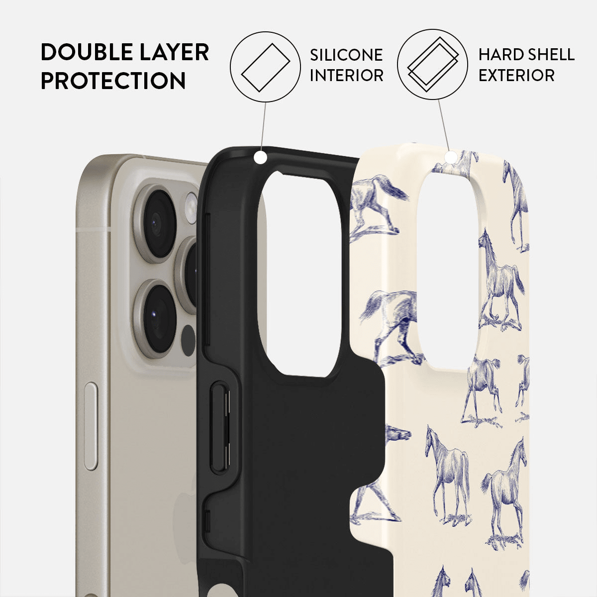Coveret er udformet til at kombinere design og beskyttelse, uden at føles klodset. Et beskyttelsescover med to lag giver ekstra holdbarhed i hverdagen: silikone på indersiden og et hårdt ydre lag.