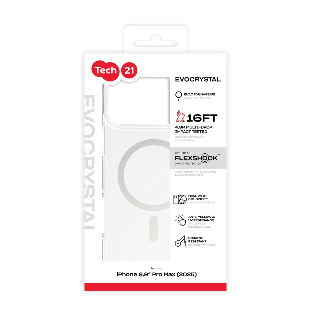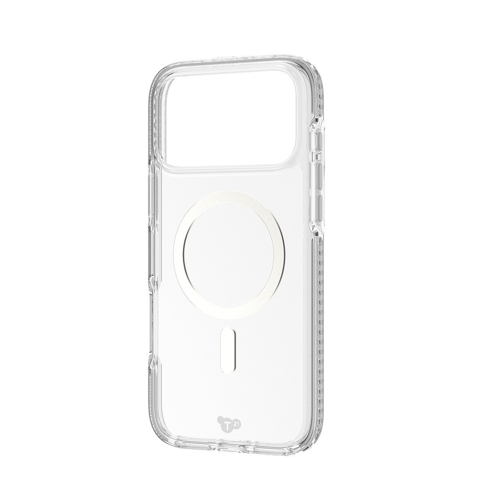 Tech21 iPhone 17 Pro Max Skal EvoCrystal MagSafe Metallic Silver er et sølv- og gennemsigtigt telefonskal til iPhone 17 Pro Max.