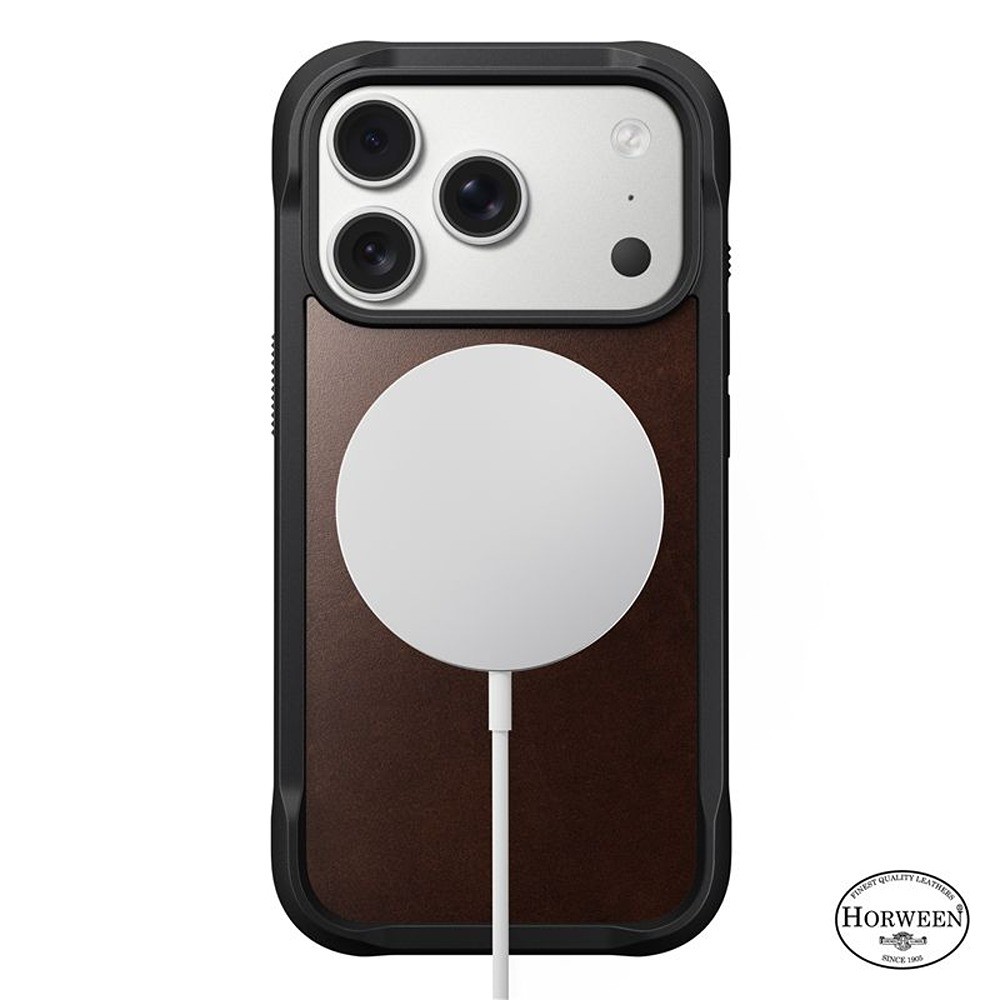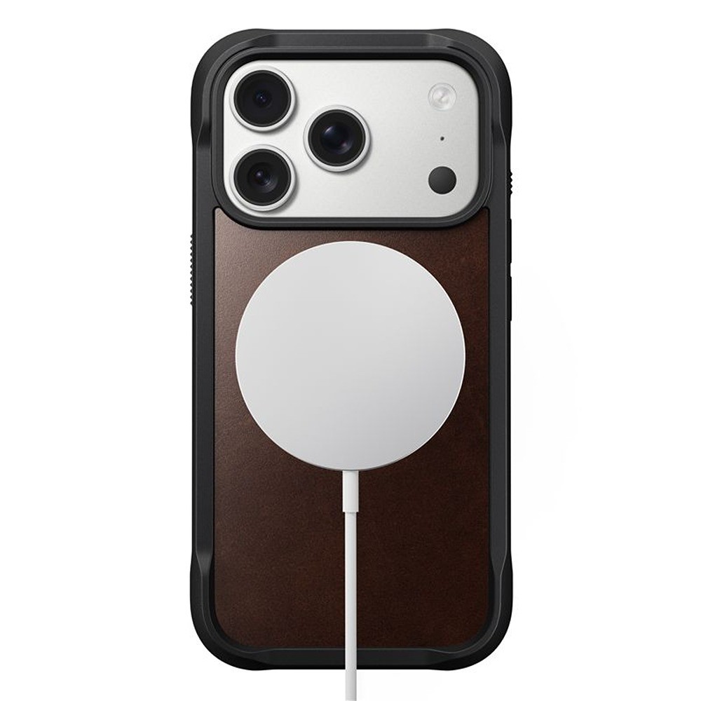 NOMAD iPhone 17 Pro Skal Modern Leather Case Horween Rustic Brown er et brunt mobilcover til Apple iPhone 17 Pro.