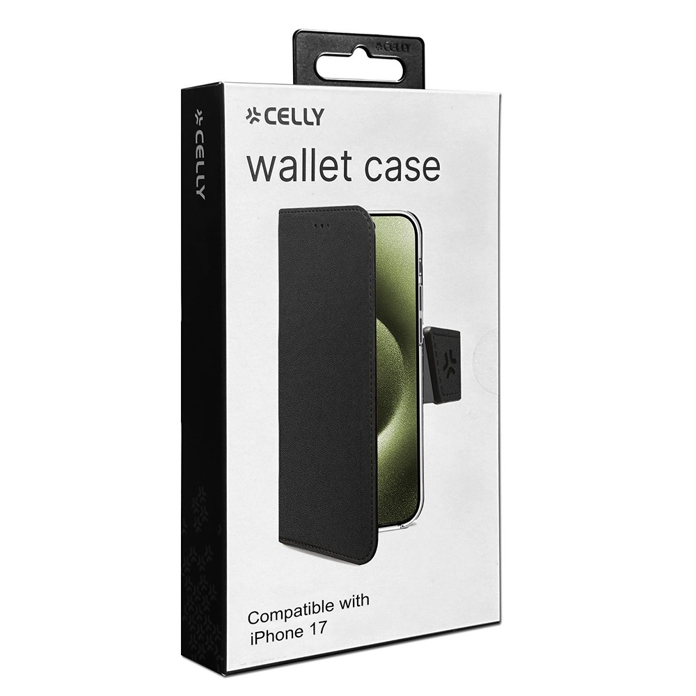 Celly iPhone 17 etui Wally Wallet Case Sort er et sort mobiletui til iPhone 17.