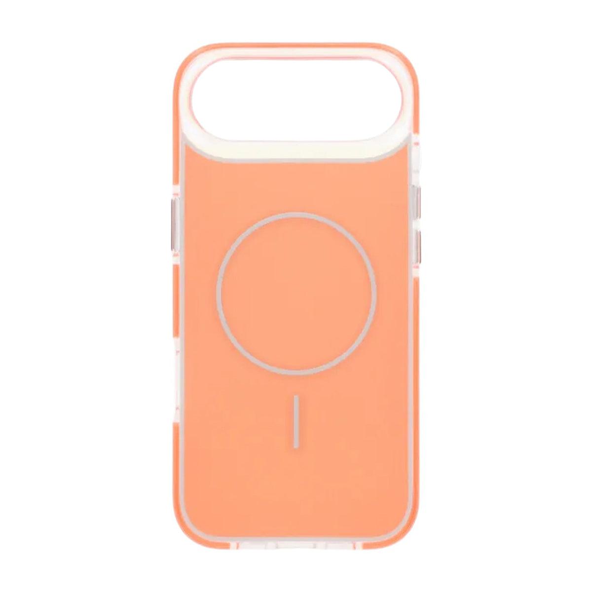 Et stødresistent TPU bumperetui med en MagSafe magnetring i orange farve.