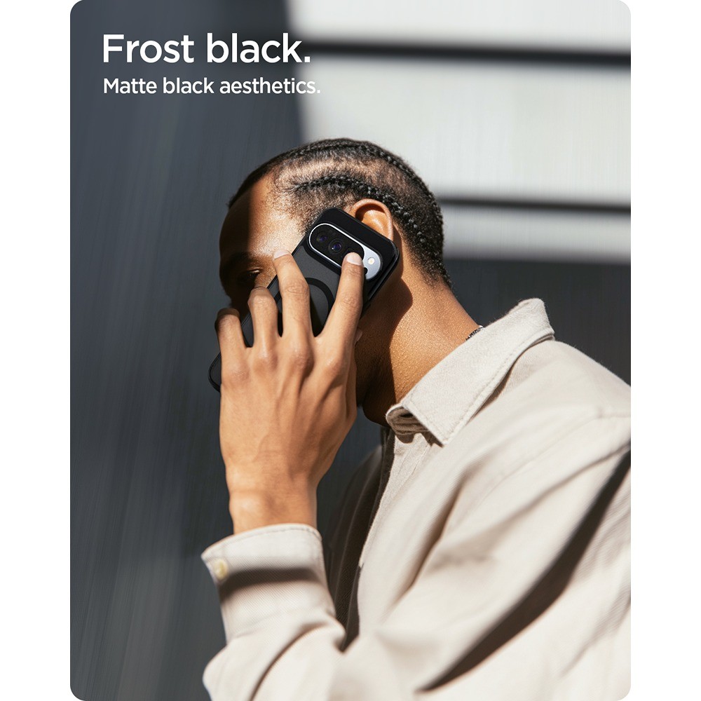 Spigen Google Pixel 10 Pro XL Skal Ultra Hybrid MagFit Frost Black er et sort og gennemsigtigt mobilcover til Google Pixel 10 Pro XL.