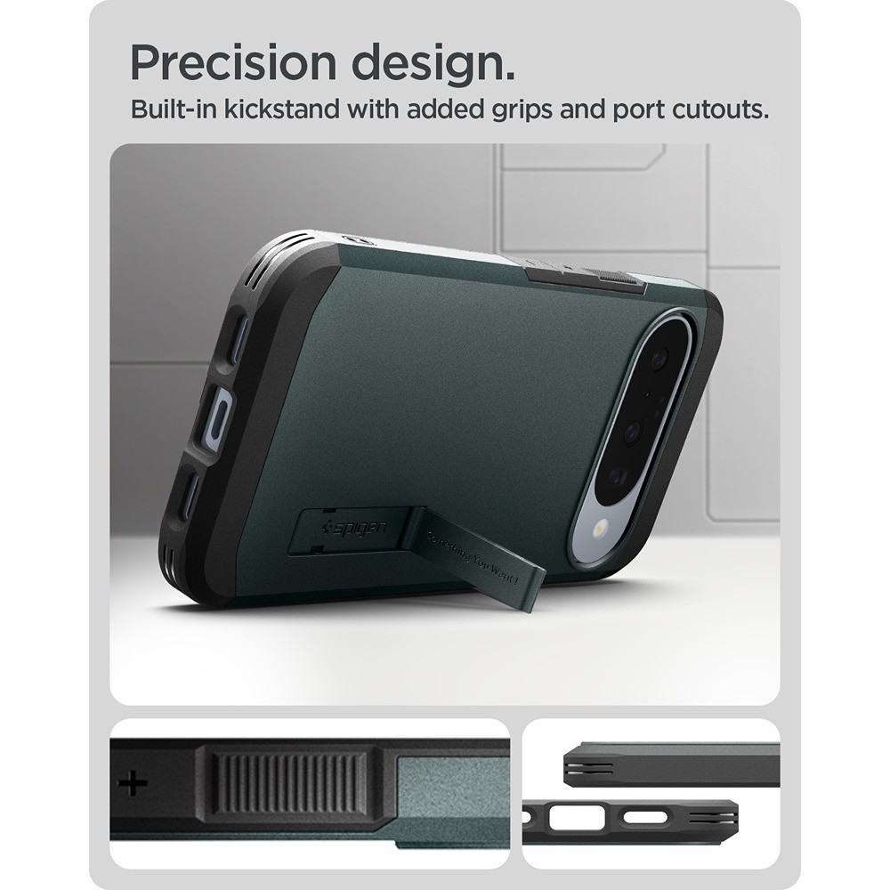 Spigen Google Pixel 10/Pixel 10 Pro Skal Tough Armor MagFit Abyss Green er et grønt mobilcover til Google Pixel 10 og Google Pixel 10 Pro.