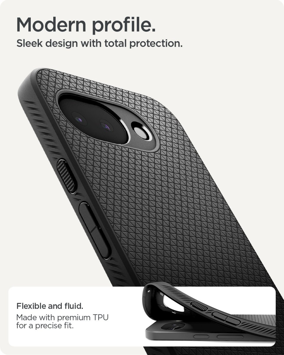 Spigen Google Pixel 10a Skal Liquid Air Matte Black er et sort mobilcover til Google Pixel 10A.
