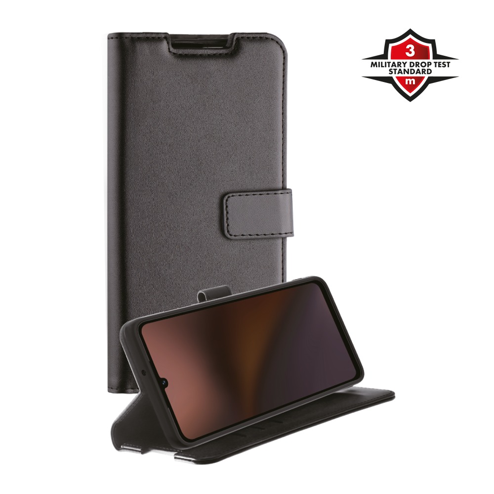 Opbevaring og visning i hverdagen: Med kortlommer og stativfunktion kan du have dine vigtigste kort med og samtidig sætte skærmen i liggende tilstand, når du vil se indhold.