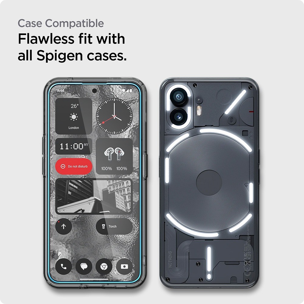 Spigen Nothing Phone (2) Skærmbeskyttelse GLAS.tR ALIGNmaster 2-pack er et gennemsigtigt beskyttelsesglas til Nothing Phone (2).