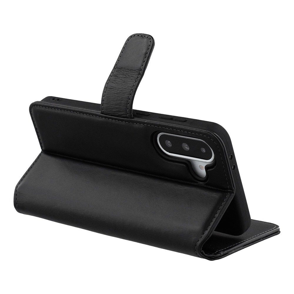 Nordic Covers stilrene tegnebogsetui gør det muligt for at opbevare dine vigtigste kort sammen med en af dagens mest værdifulde ejendele; din mobil. Mobiletui er fremstillet i ægte læder, som får en fin patina over tid og gør etuiet slidstærkt. Med en smarte magnetlukning holdes tegnebogsetuiet lukket, så du slipper for at være urolig for at dine kort falder ud. Dette mobiletui har en smart stativfunktion som sørger for at man kan stille telefonen op i landskabsmode, så man for eksempel kan se film på togrejsen.