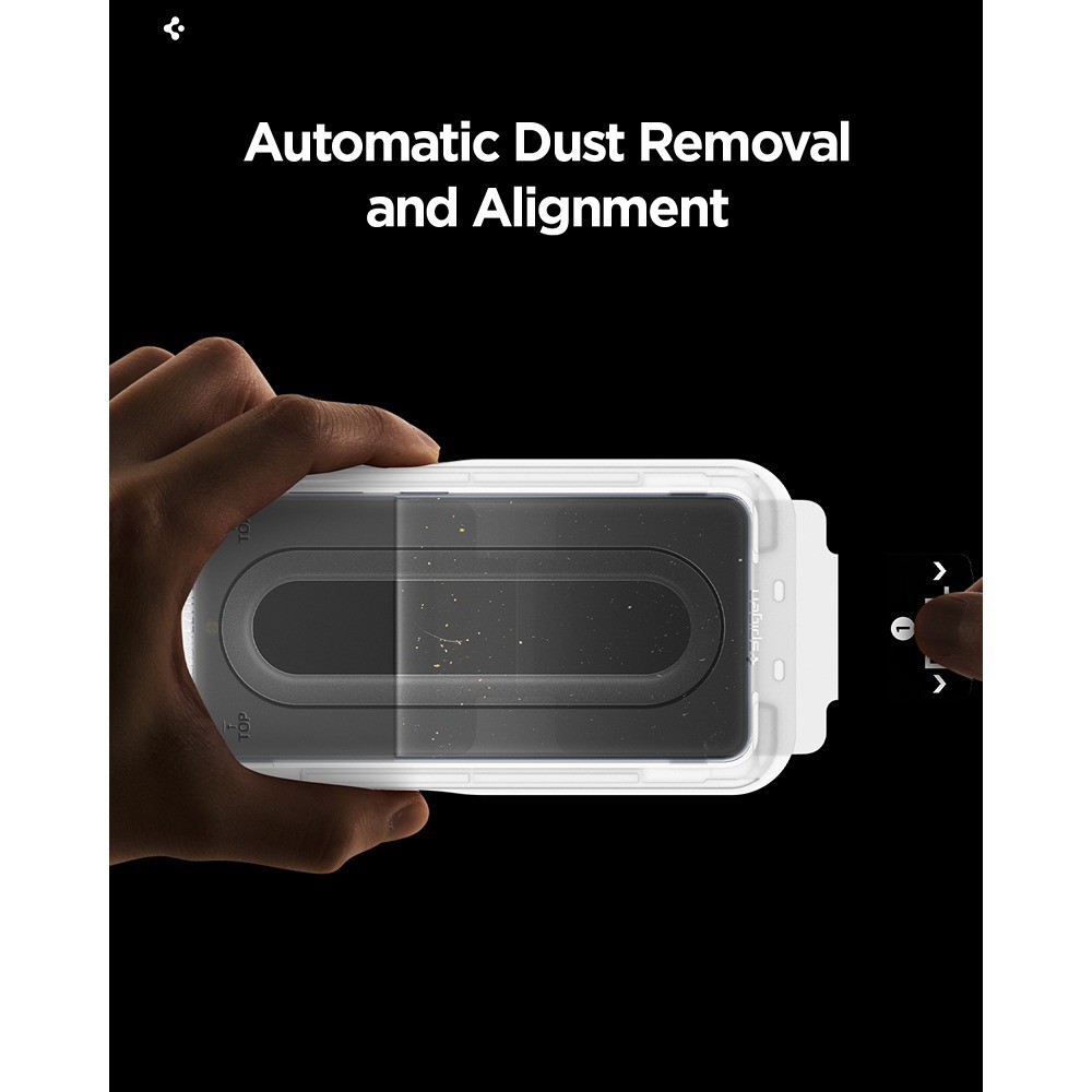 Monteringen bliver lettere med den medfølgende monteringsramme, som hjælper dig med at placere panserglasset korrekt. En aftagelig film medfølger også til automatisk støvfjernelse ved påføring.