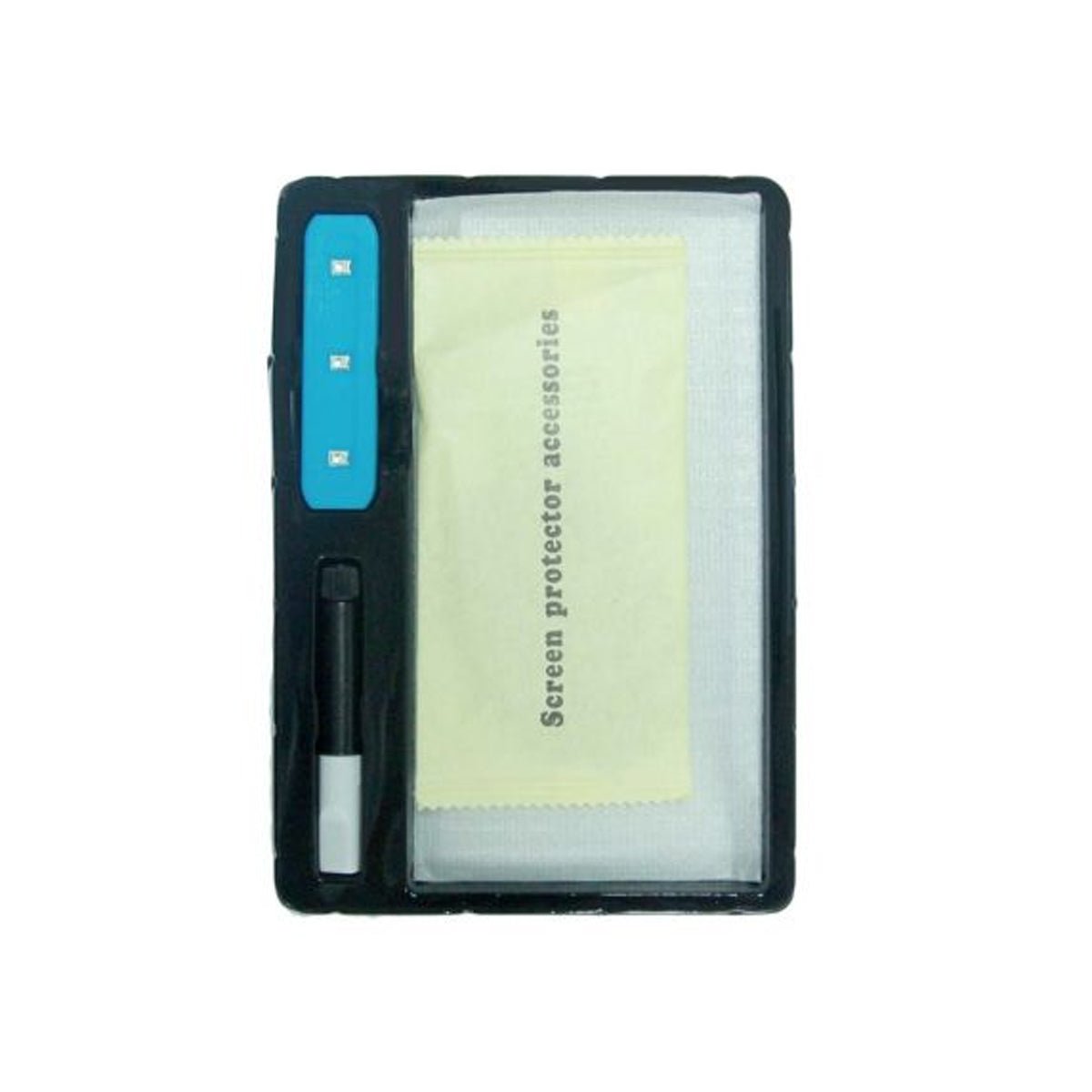 Den hærdede beskyttelsesfilm beskytter din skærm mod ridser og skader og er forstærket for at øge dens evne til at modstå stød og chok. Beskyttelsesfilmen monteres med en UV-lim, der påføres skærmens overflade, hvilket sikrer, at filmen klæber fuldstændigt til skærmen. Hvis beskyttelsesfilmen går i stykker, holdes glasskårne sammen takket være den siliconebaserede UV-lim.