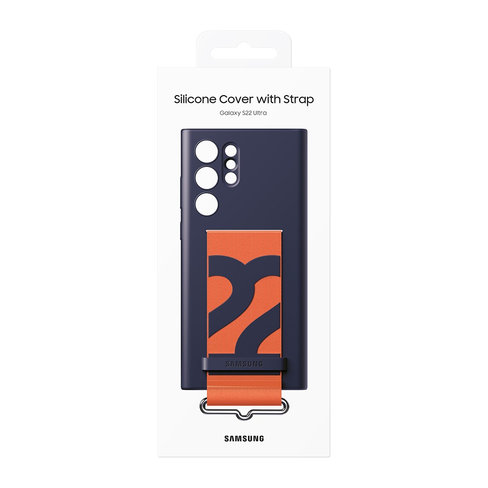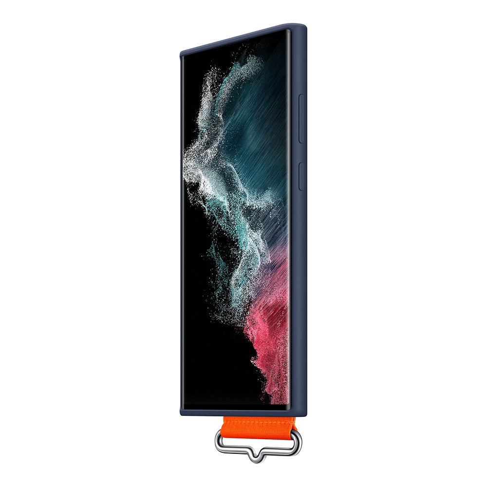 Samsung Original Galaxy S22 Ultra Skal Silicone Cover with Strap Navy er et blåt mobilcover til Samsung Galaxy S22 Ultra.