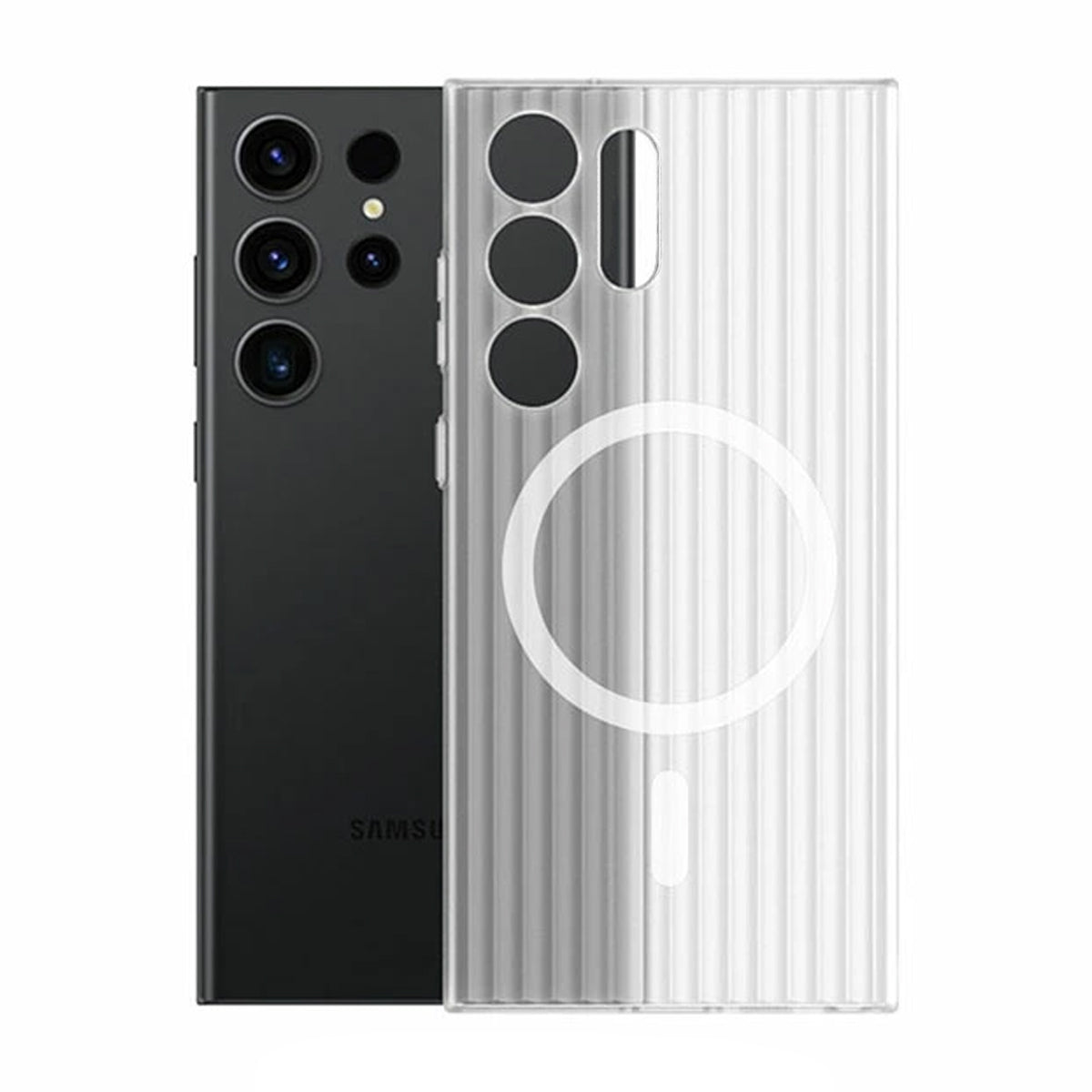 Med dette slanke Samsung Galaxy S24 Ultra mobilcover med en korrugerede bagside får du ikke kun fremragende beskyttelse, men også en moderne og unik æstetik, der passer til din personlige stil.