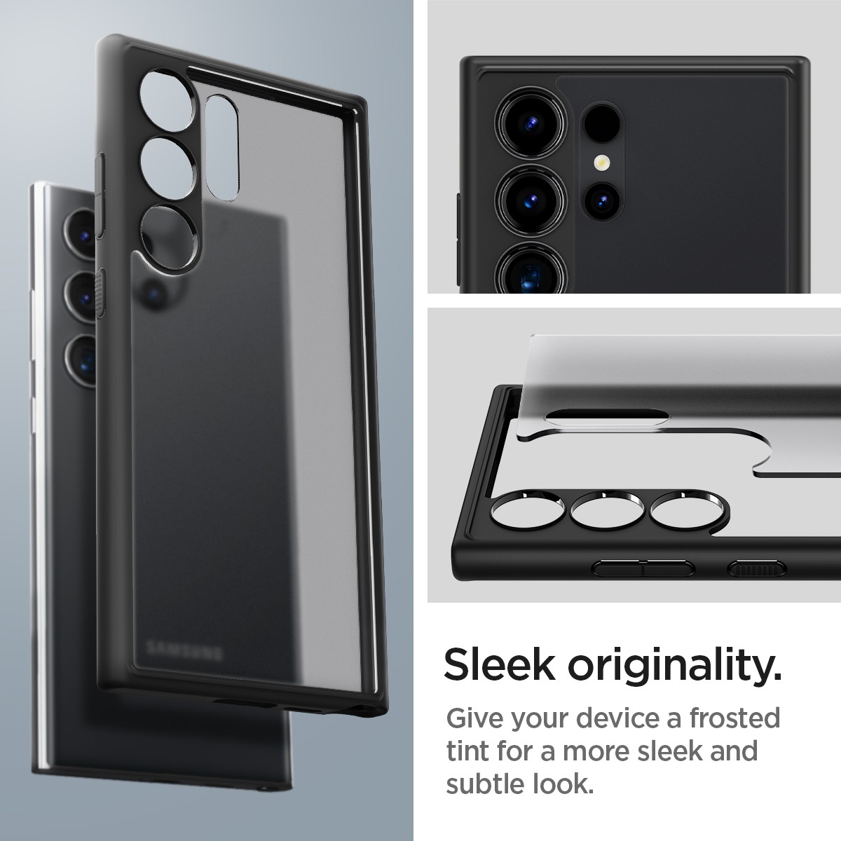 Spigen Samsung Galaxy S24 Ultra Skal Ultra Hybrid Frost Black er et sort og gennemsigtigt mobilcover til Samsung Galaxy S24 Ultra.