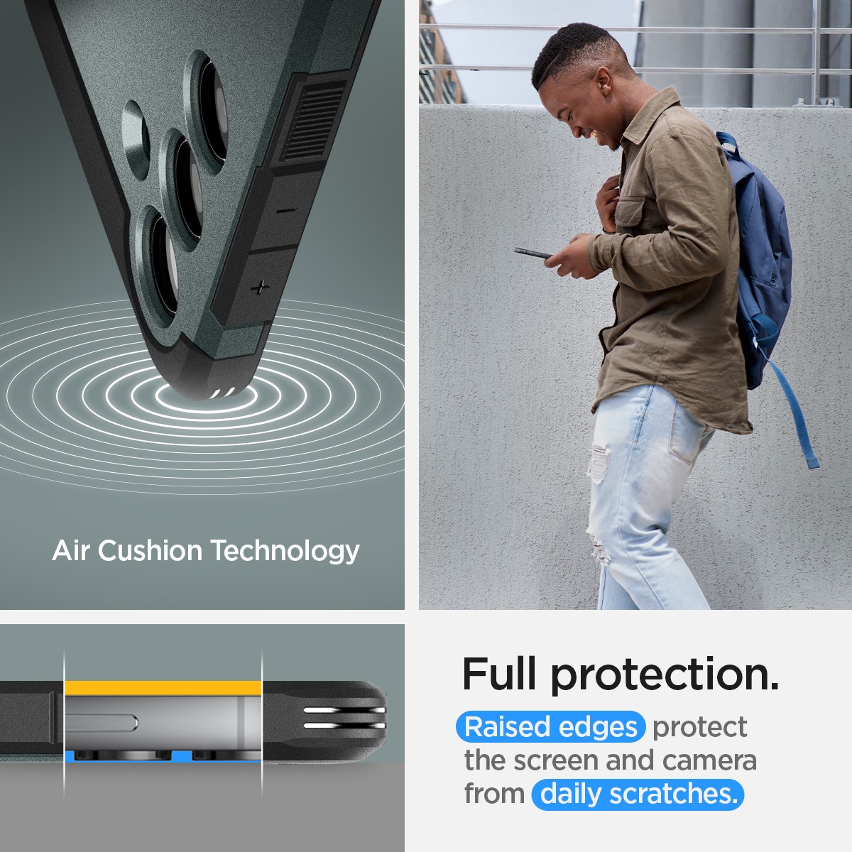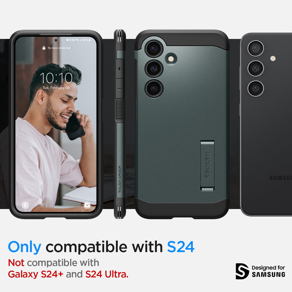 Spigen Samsung Galaxy S24 Skal Tough Armor Abyss Green er et grønt mobilcover til Samsung Galaxy S24.