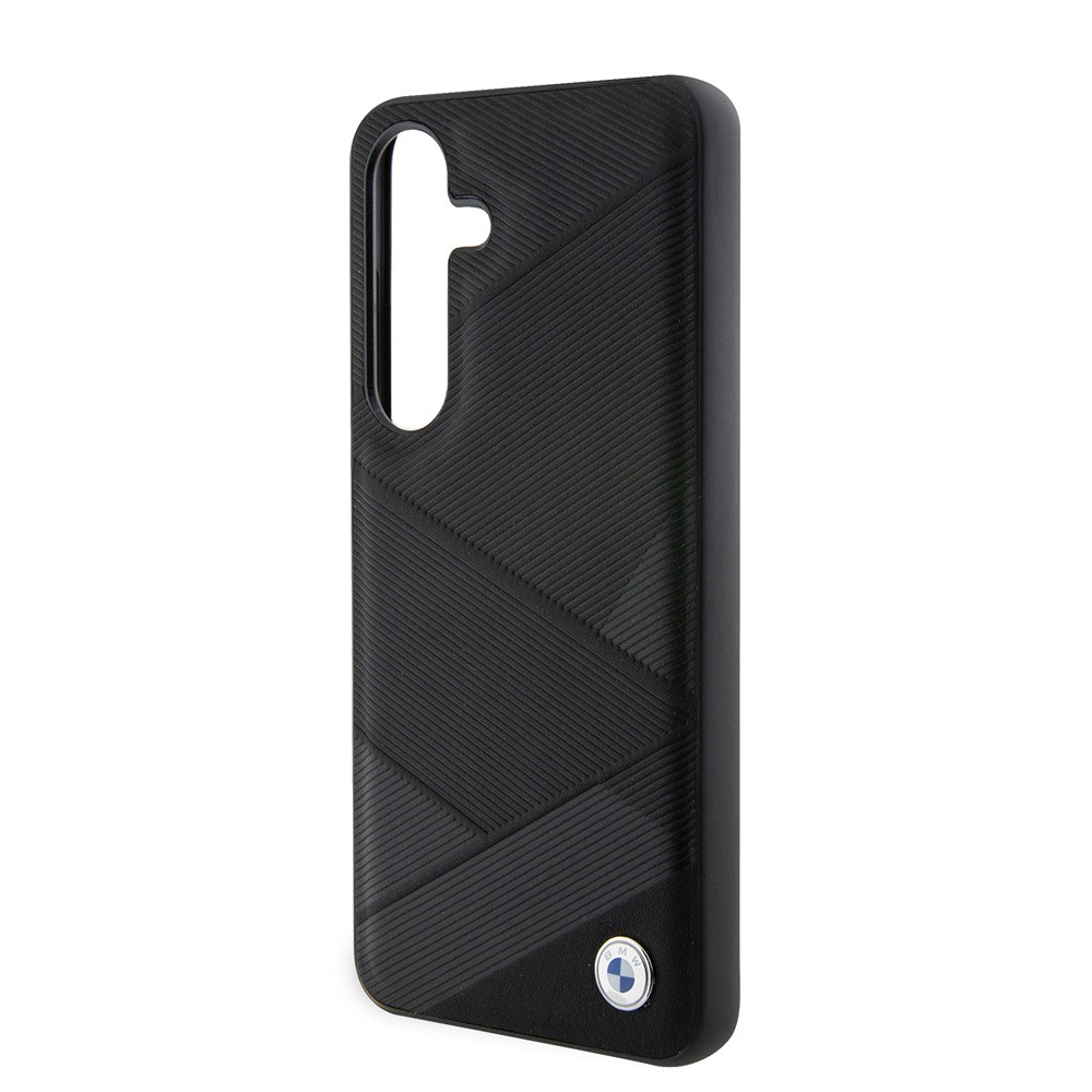 BMW Samsung Galaxy S24 Skal Genuine Leather Textured Svart er et sort mobilcover til Samsung Galaxy S24.