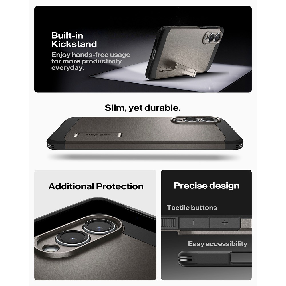 Spigen Samsung Galaxy S25 Edge Skal Tough Armor MagFit Gunmetal er et gråt mobilcover til Samsung Galaxy S25 Edge.