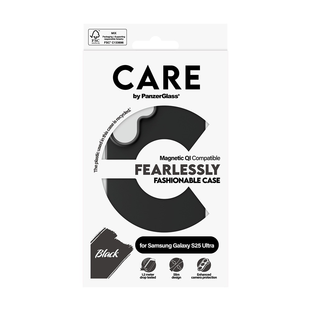 CARE by PanzerGlass Samsung Galaxy S25 Ultra Skal Fashionable MagSafe Sort er et sort mobilskal til Samsung Galaxy S25 Ultra.
