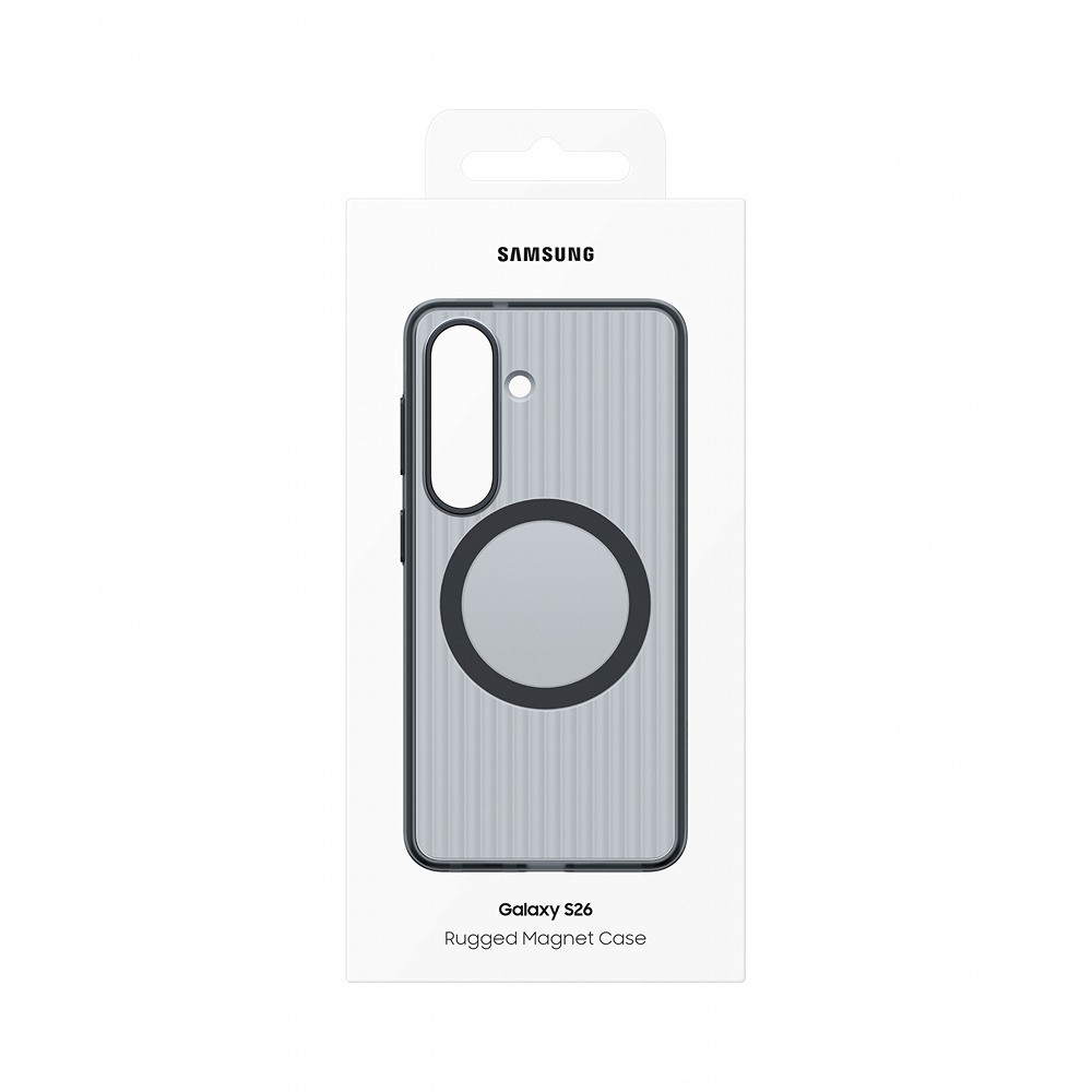 Samsung Original Galaxy S26 Skal Rugged Magnet Case Sort er et sort og gennemsigtigt mobilskal til Samsung Galaxy S26.