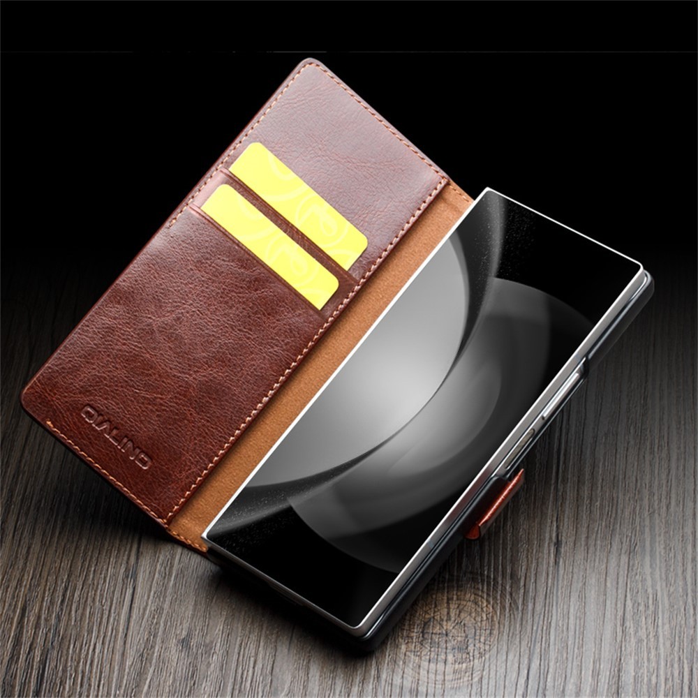 QIALINO Samsung Galaxy Z Fold 6 Etui Ægte Læder Sort er et sort mobiletui til Samsung Galaxy Z Fold 6.