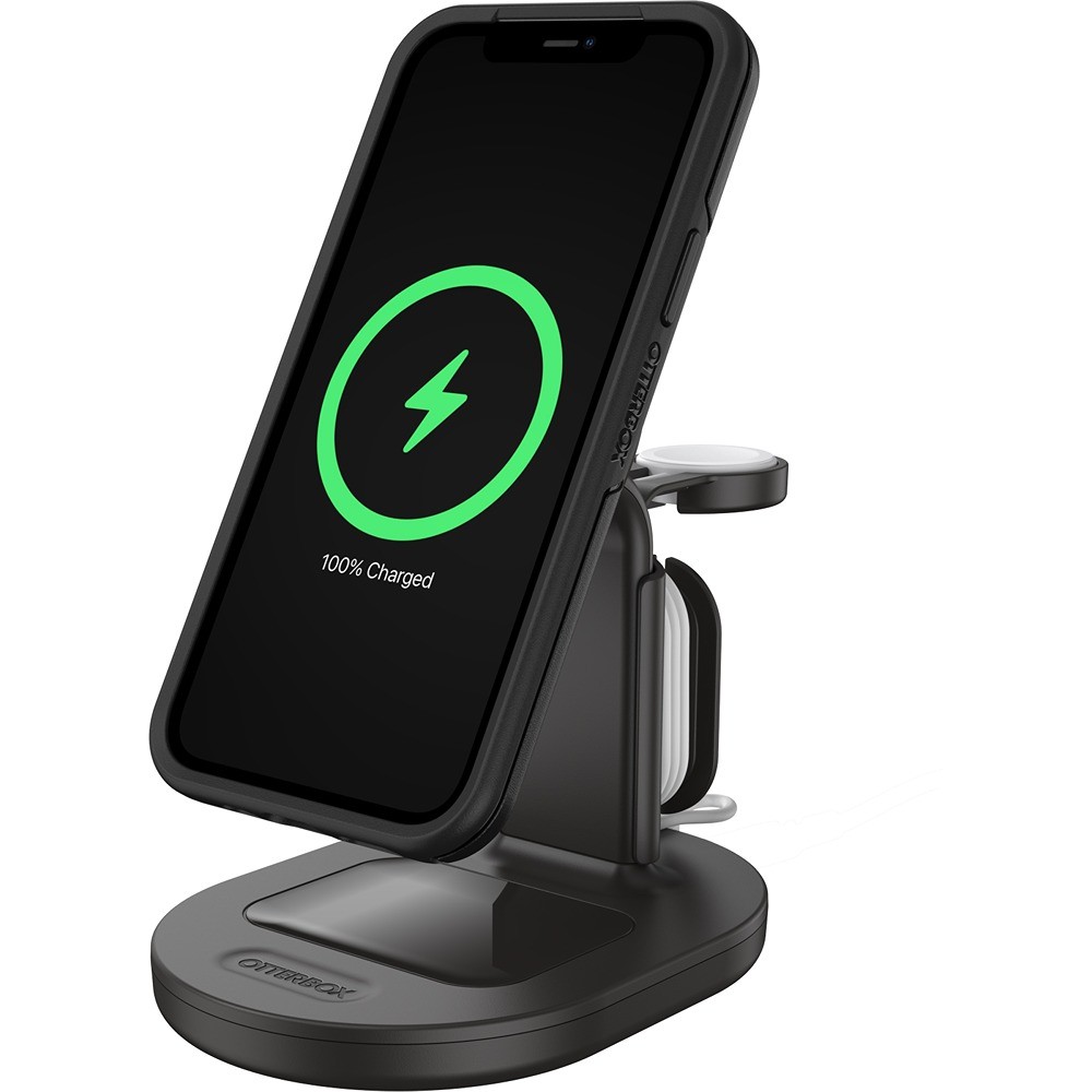 Innovativ 3-i-1 opladningsstation med MagSafe tilbyder opladning til alle dine Apple-enheder i én praktisk og pladsbesparende enhed. Placer din MagSafe-kompatible iPhone på den trådløse opladningsenhed og placér dine AirPods på basen. Du kan desuden tilføje din egen Apple Watch-oplader til stativet og have en komplet opladningsstation til alle dine Apple-enheder. Perfekt til brug i hjemmet eller på kontoret.