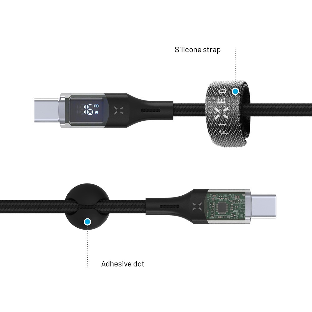 Mød FIXED – et data- og opladningskabel, hvor gennemsigtige stik og et indbygget digitalt LED-display gør det til noget ud over det sædvanlige.