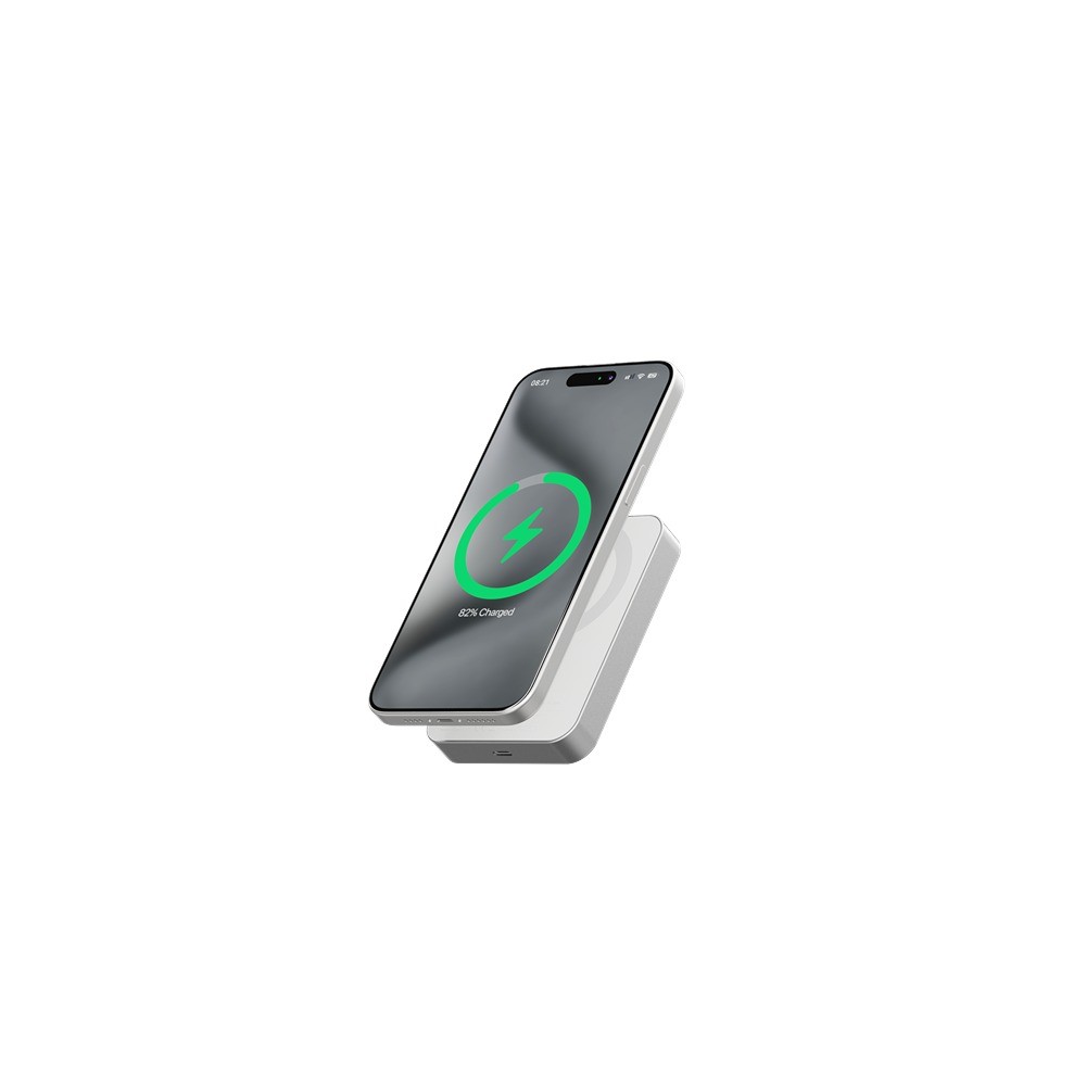 Den ultrakompakte powerbank er kun 14 mm tyk og vejer 195 gram, hvilket gør, at den sømløst passer på bagsiden af dit MagSafe-udstyr og oplader det hurtigt gennem en magnetisk forbindelse. Dette exceptionelle tilbehør er designet til at integrere sig i dit mobile liv uden problemer. Med sit slanke, rene og minimalistiske danske design oplader denne Power Bank hurtigt din telefon og sikrer, at den forbliver opladet hele dagen.